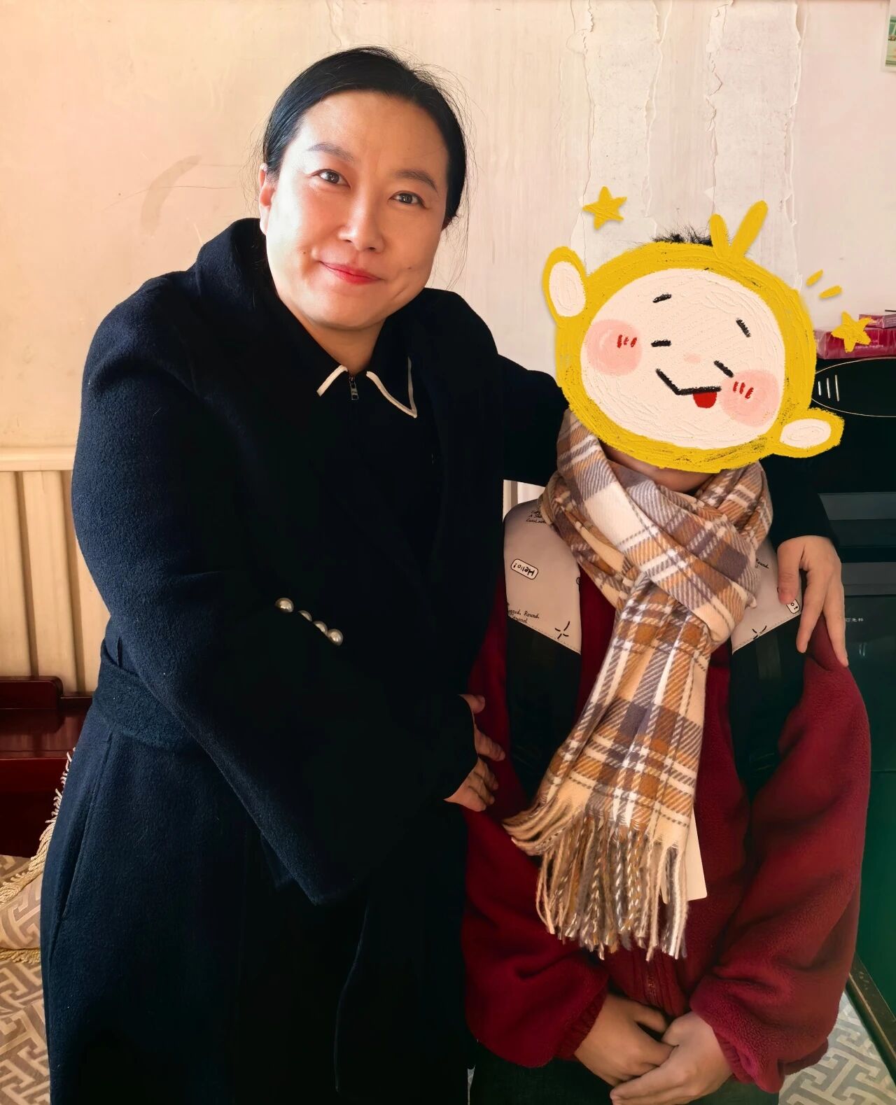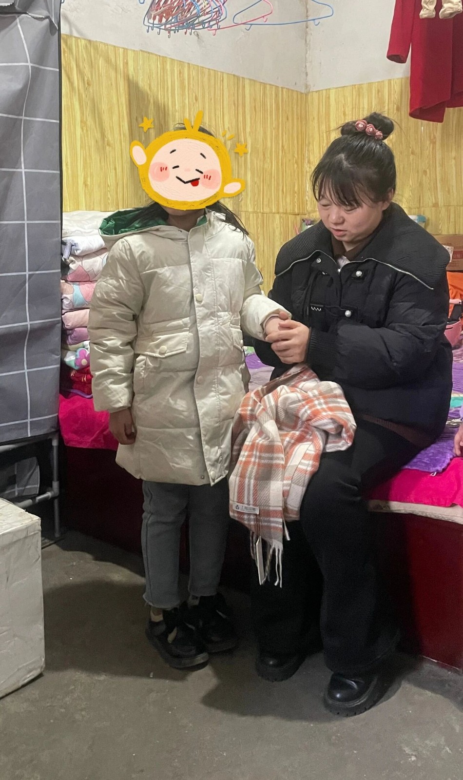 抵达目的地时,孩子们已经站在门口迎接了,爱心妈妈们将礼物一一递到孩子们的手中时,孩子们脸上绽放出纯真灿烂的笑容。在孩子们家中,爱心妈妈们为孩子们试戴了围巾、手套,与他们亲切交谈,了解他们的学习情况、生活趣事和内心想法。有的孩子兴奋地展示自己的奖状,有的孩子羞涩地分享着学校的趣事,爱心妈妈们认真倾听,不时给予鼓励和赞扬。“孩子,以后不管碰上什么问题,随时都能给阿姨打电话,别跟阿姨客气!”爱心妈妈们的话语,温柔且坚定,浓浓的善意将窗外的彻骨寒冷隔绝在外,让孩子的心里瞬间涌起一股热流。