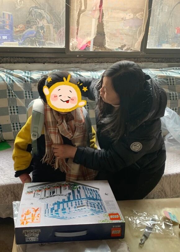 1月20日,三组“爱心妈妈”们带上为孩子们精心挑选的书包、乐高、温暖的围脖和手套踏上了前往关爱对象家中的路途。