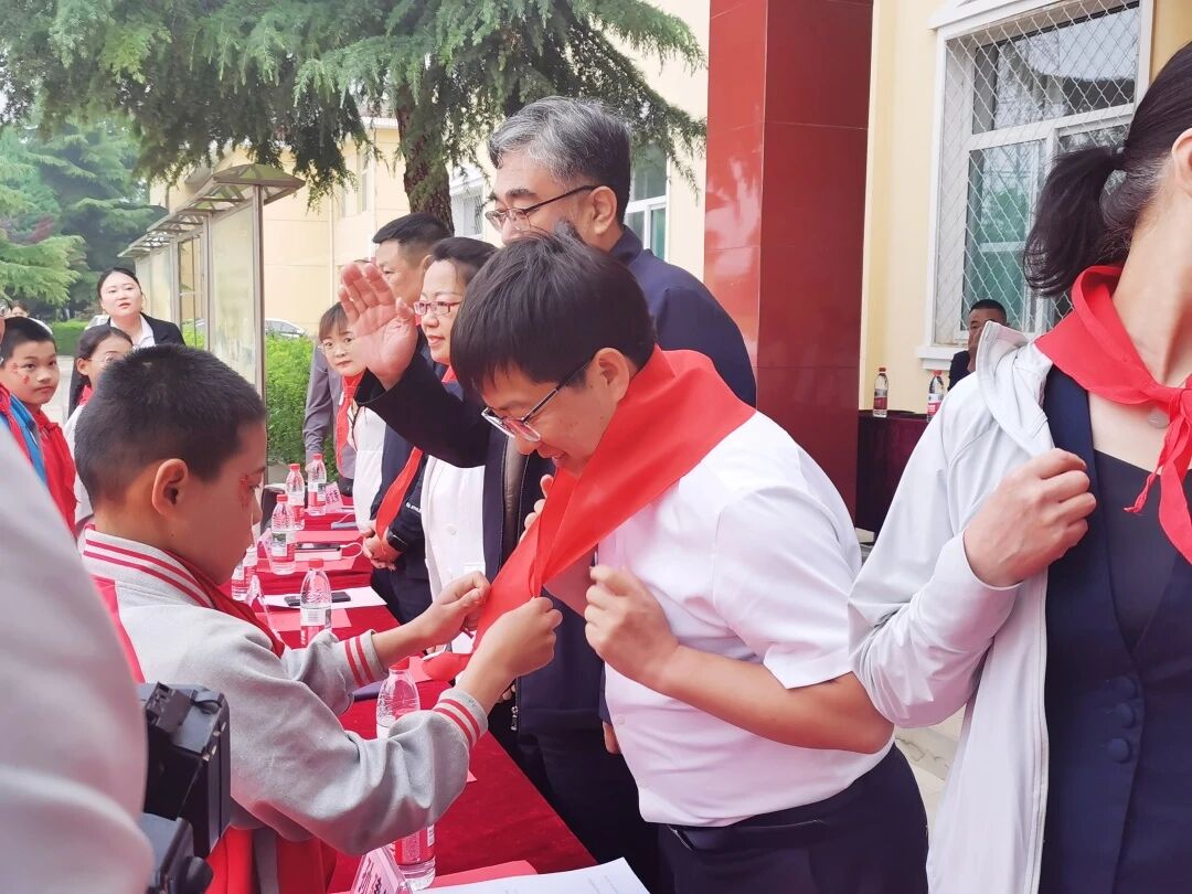 活动在庄严而热烈的氛围中拉开帷幕。少先队员们满怀敬意地为参会领导佩戴上鲜艳的红领巾,用纯真的方式表达着对爱心人士的欢迎与感谢 。县底联校党支部书记、校长王海同志首先上台致辞,对各爱心单位的到来表示诚挚的感谢,并表达了对孩子们未来的美好期许。